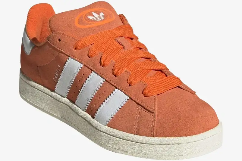 The Adidas Campus 00s Amber Tint reimagines the classic 1980s silhouette with a bold, oversized aesthetic. This specific edition draws inspiration from early 2000s skate culture through its exaggerated proportions and vibrant color palette. It bridges the gap between heritage basketball design and modern streetwear sensibilities for a unique visual statement. The Amber Tint colorway defines this release, offering a warm, saturated orange hue across the premium suede upper. This striking tone contrasts sharply with the crisp white serrated three stripes and heel tab.