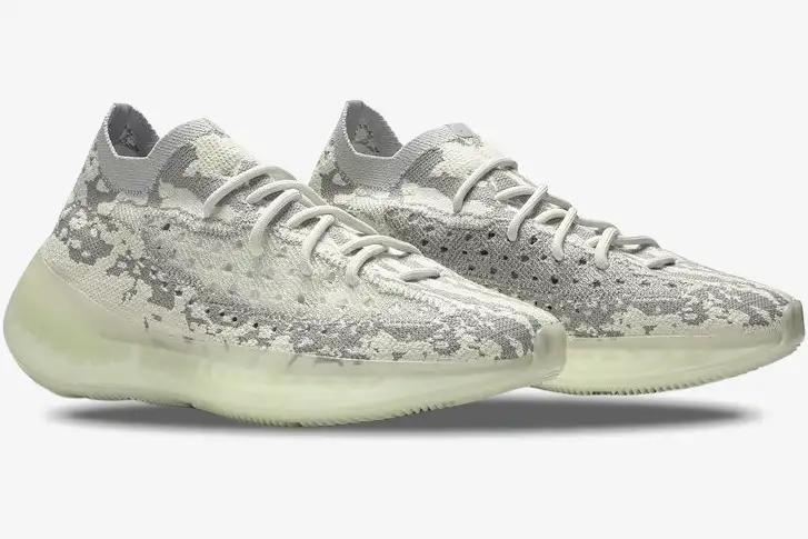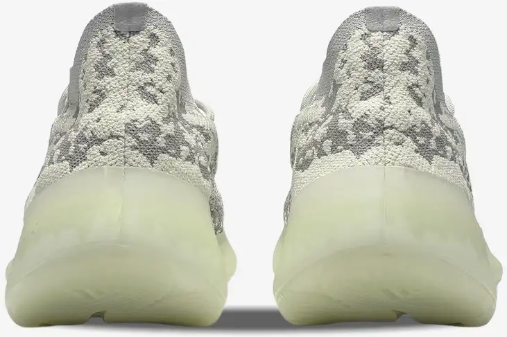 Kanye West and the Yeezy team utilize a unique glitch-patterned Primeknit to create a visually striking, multi-toned surface. The Alien colorway features a distinctive blend of white and grey hues that mimic natural geological formations. A translucent midsole encases the signature Boost technology, providing a sleek contrast to the intricate knit upper. This collaboration emphasizes a sock-like fit that adapts to the foot for a personalized and secure feel. The design team incorporates a hidden lacing system that maintains the clean lines of the upper construction.