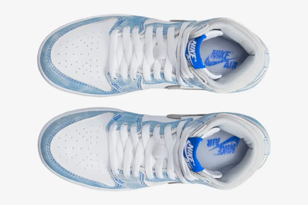 The Air Jordan 1 Retro High OG Hyper Royal introduces a weathered aesthetic to the legendary high-top silhouette. This specific edition targets collectors who appreciate a vintage, lived-in look combined with premium craftsmanship. It stands apart from traditional leather releases through its unique textural depth and muted color palette.