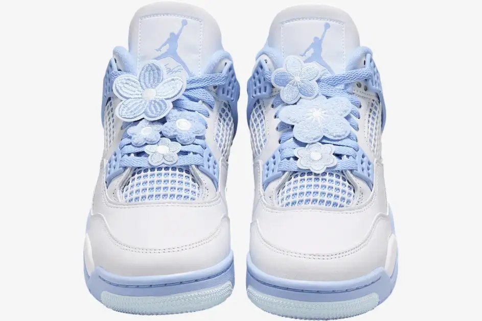 The Air Jordan 4 Forget Me Not Custom reimagines a legendary basketball silhouette with delicate floral artistry. This custom edition caters to women who value unique craftsmanship and botanical-inspired aesthetics. It transforms the rugged heritage of the Jordan 4 into a soft, expressive statement piece.