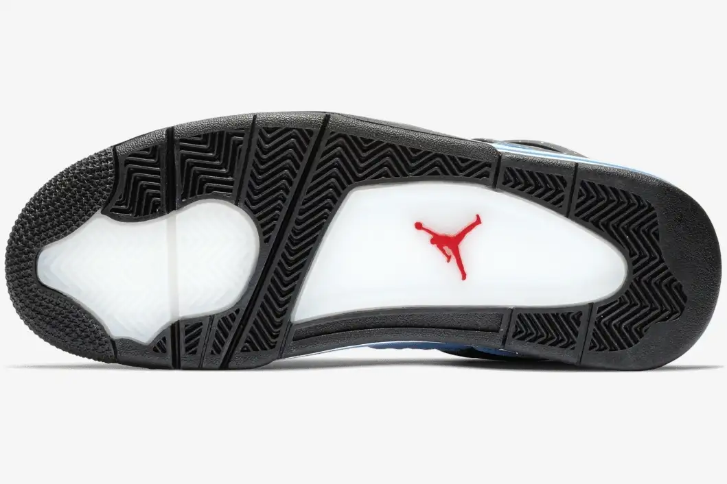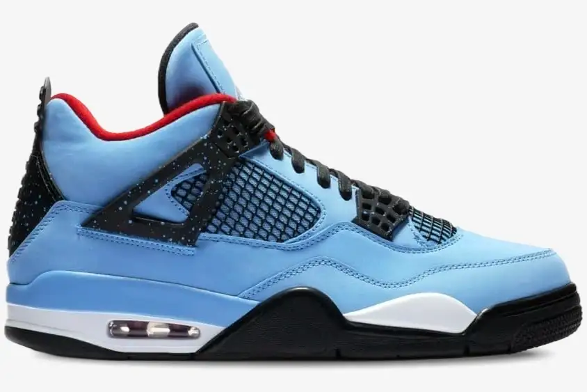 Premium University Blue suede covers the upper to provide a luxurious texture and long-lasting durability. Black mesh side panels offer essential breathability while maintaining the structural integrity of this classic basketball silhouette. The midsole houses a visible Air unit in the heel to ensure responsive cushioning during daily wear. A rubber outsole with a herringbone traction pattern delivers reliable grip on various urban surfaces. Every material choice reflects the high standards of both Travis Scott and the Jordan Brand.