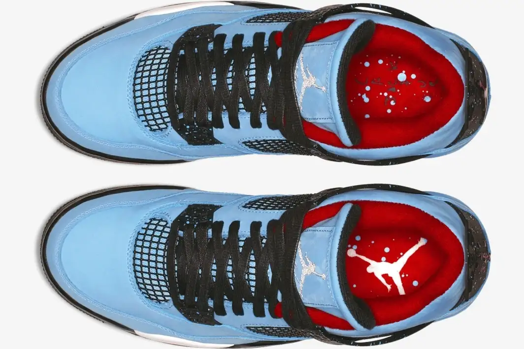 The left heel features the Cactus Jack logo, replacing the traditional Jumpman or Nike Air branding for a distinct look. Speckled patterns on the TPU wings and heel tab mimic the aesthetic of vintage sportswear from the artist’s hometown. Red accents on the inner lining and tongue branding provide a sharp contrast against the dominant blue upper. This collaboration prioritizes storytelling by linking the childhood memories of Travis Scott to a legendary basketball silhouette.