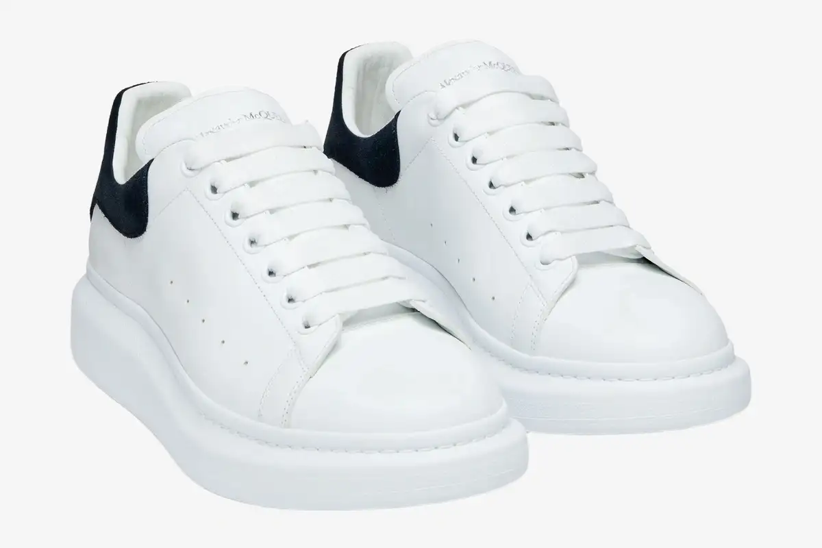 The Alexander McQueen Oversized Sneaker AMQ006 redefines modern luxury through its signature exaggerated proportions and minimalist aesthetic. This specific AMQ006 iteration features a stark white leather upper contrasted by a deep black suede heel tab. It serves the fashion-forward individual who demands a bold silhouette paired with refined craftsmanship. The iconic chunky rubber sole provides a distinct height advantage while maintaining a clean, architectural profile. Perforated side panels ensure a breathable environment for the foot during extended periods of daily wear.