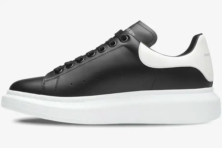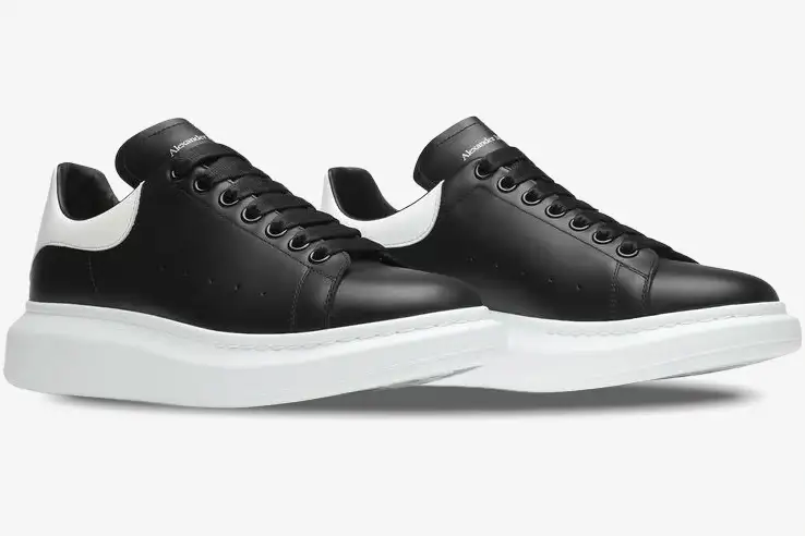 The 2019 Alexander McQueen Oversized Sneaker in Black and White defines the luxury fashion house’s bold aesthetic. This specific iteration pairs a stark black leather upper with the signature chunky white sole for high contrast. It caters to individuals who value architectural silhouettes and premium craftsmanship within a minimalist framework.