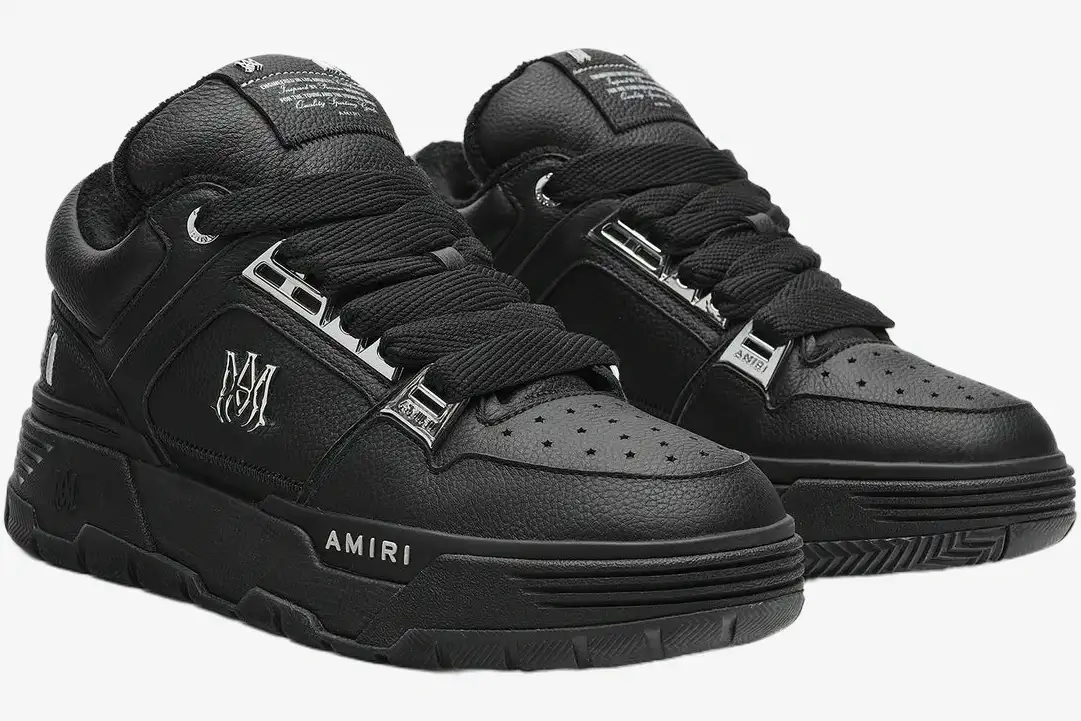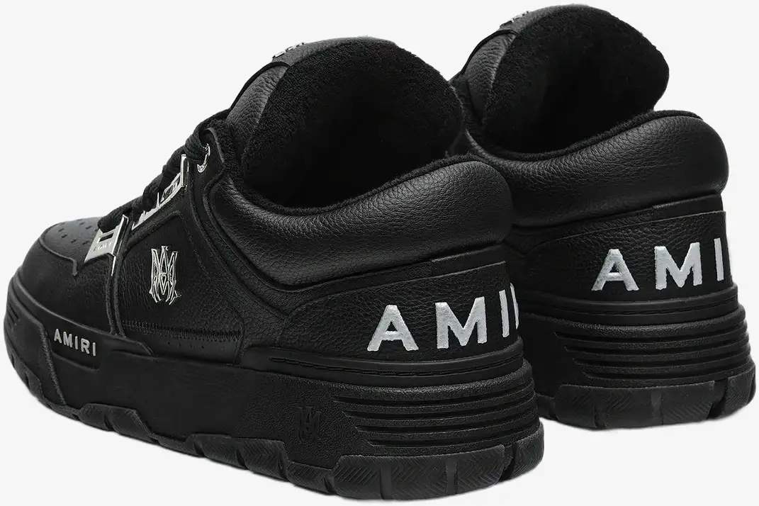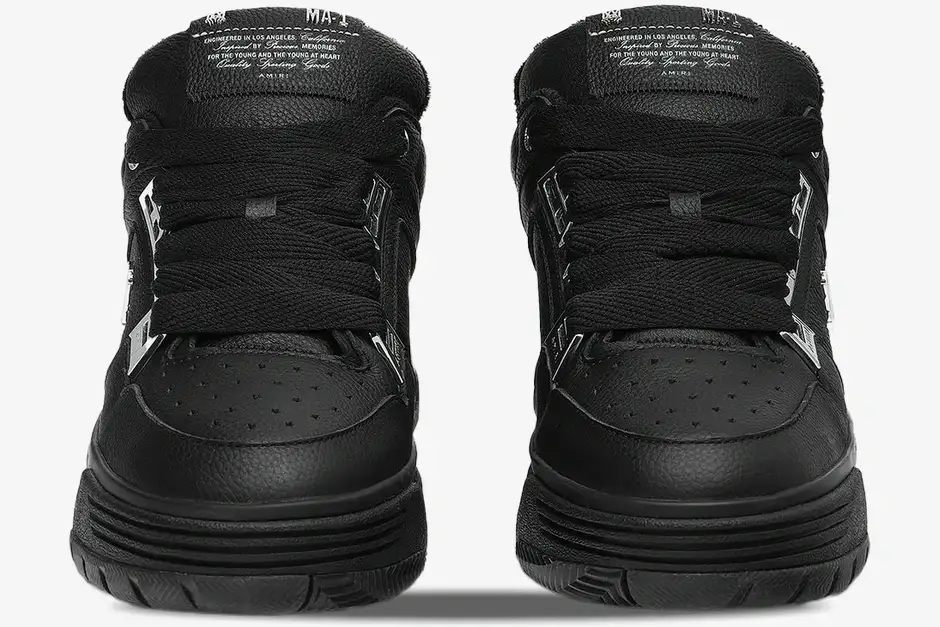 The Amiri MA-1 Leather Sneakers in Black Metallic redefine luxury streetwear through a bold, 90s-inspired skate silhouette. This specific iteration pairs deep black pebbled leather with striking metallic accents for a high-contrast, premium aesthetic. It targets the modern connoisseur who demands both structural durability and high-fashion visibility in their daily rotation.