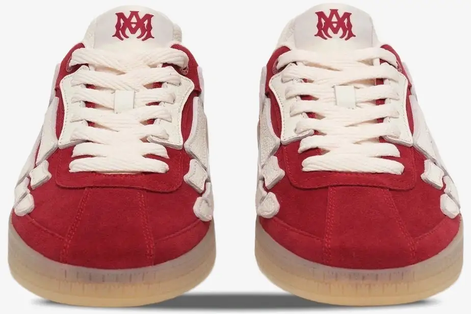 The Amiri Pacific Skeleton Bone Red White redefines luxury streetwear through its anatomical design and premium material construction. This specific iteration of the Pacific silhouette features signature hand-cut leather skeleton overlays in a bold red and white contrast. It targets fashion enthusiasts who demand high-end craftsmanship paired with a rebellious, rock-and-roll aesthetic.