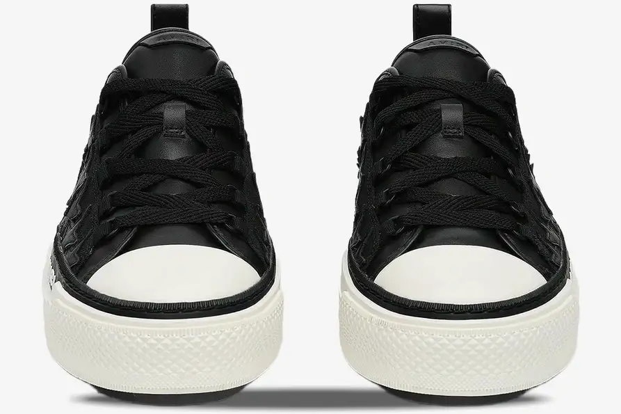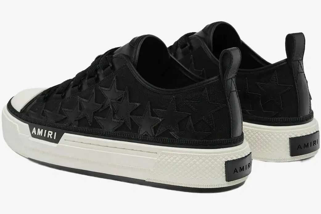 The Amiri Stars Court Black Leather Star Patch reimagines the classic court silhouette with a distinct rock-and-roll aesthetic. This specific version elevates the standard court sneaker through intricate leather appliqué and a bold platform stance. It caters to the modern enthusiast who values artisanal craftsmanship alongside a rebellious streetwear edge.