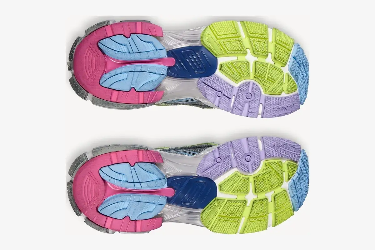 A signature embroidered size digit appears at the edge of the toe, providing a distinct Balenciaga branding touch. The Runner logo sits prominently on the lateral side, while the pull-on tab at the back ensures functional ease for daily wear. The chunky rubber outsole provides a stable foundation while maintaining the oversized proportions synonymous with the brand’s footwear legacy. Breathable mesh underlays ensure comfort during extended use, making this sneaker as functional as it is visually striking.
