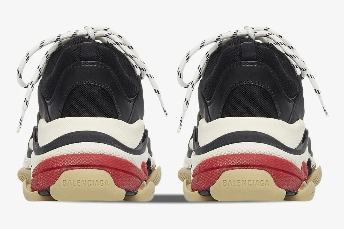 The Balenciaga Triple S Black White Red represents the definitive colorway of the iconic luxury dad shoe. This specific iteration utilizes a high-contrast palette to highlight the complex architecture of the silhouette. It serves as a cornerstone for high-fashion streetwear enthusiasts who demand a bold, recognizable presence.