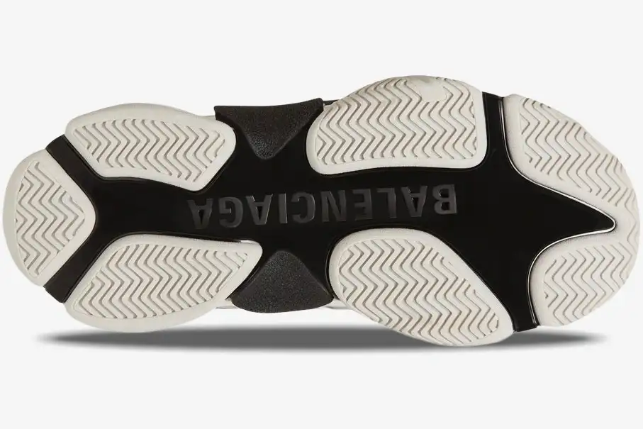 Premium leather and breathable mesh panels form the upper, providing a structured yet comfortable fit for daily wear. The iconic triple-layered rubber sole delivers the signature oversized profile that defines the Balenciaga aesthetic. Designers place the shoe size in tonal embroidery on the toe box, maintaining a hallmark detail of the original silhouette. Functional pull tabs at the heel and tongue allow for easy entry while maintaining the utilitarian look of the collaboration. The rubber outsole provides durable traction and stability, ensuring the sneaker performs as well as it looks on the street. The intricate layering of the midsole offers a responsive feel that supports the foot throughout the day.