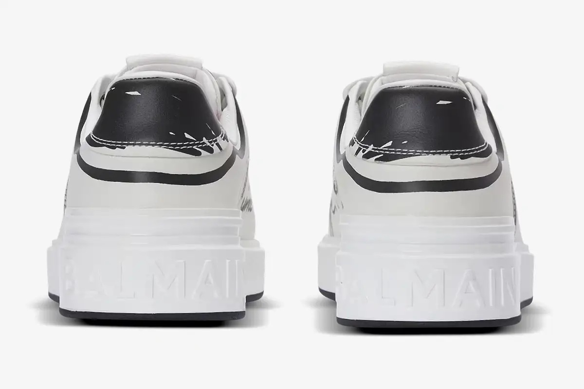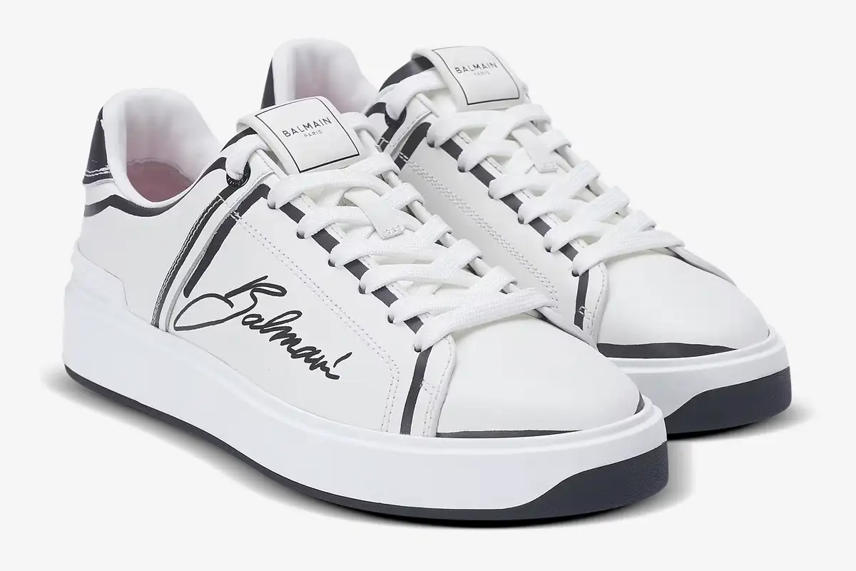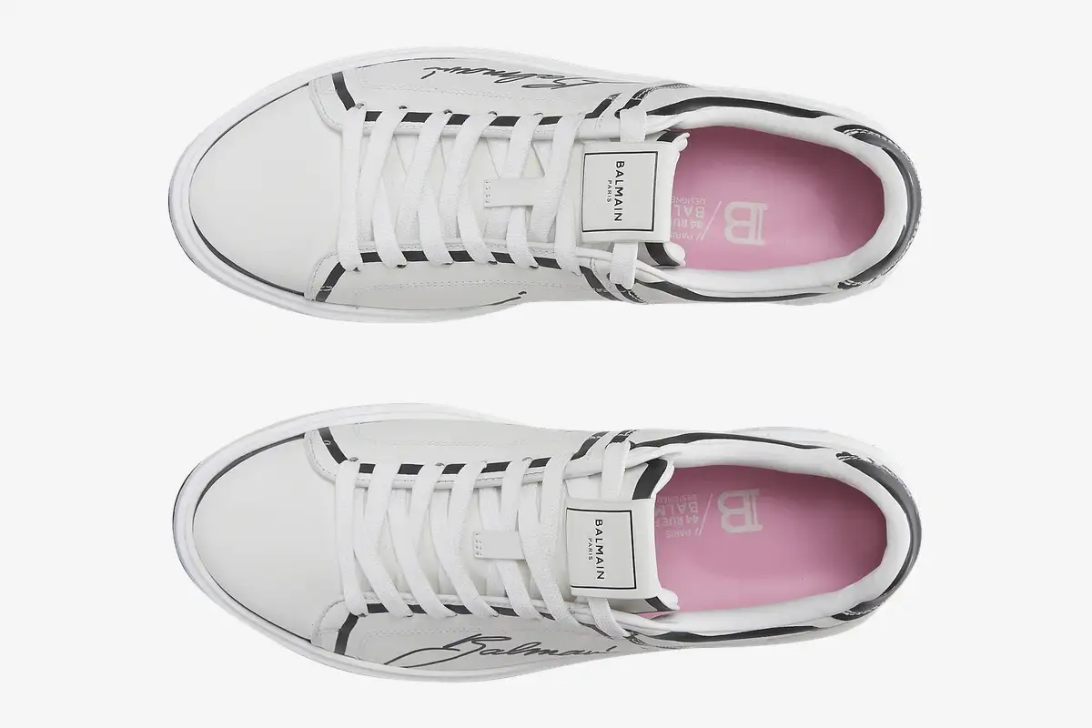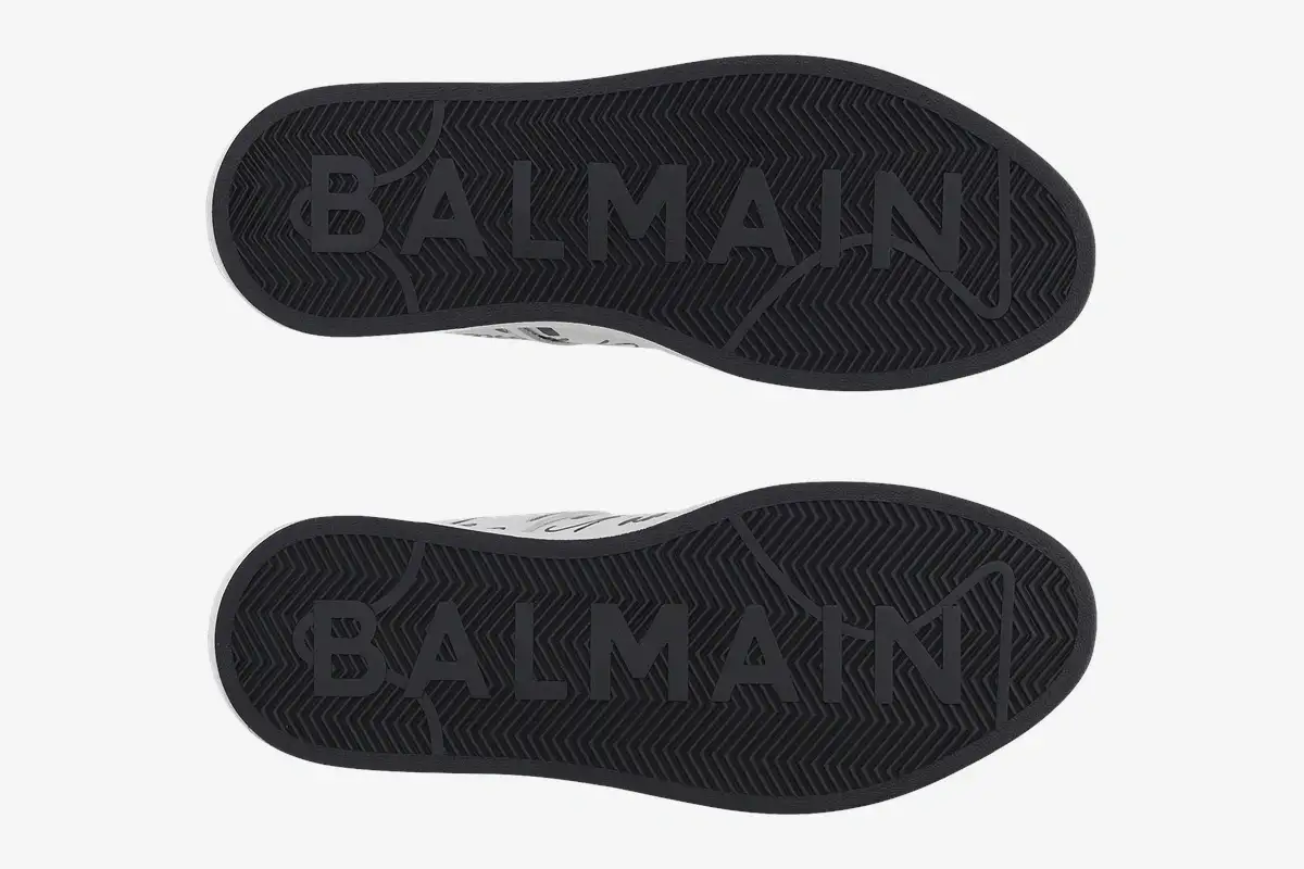 Premium calfskin leather provides a supple feel and durable structure for daily use. The smooth texture of the upper enhances the clarity of the printed logo and maintains a sophisticated appearance. A traditional lace-up closure ensures a secure fit while maintaining the sleek lines of the low-top profile. The tonal rubber cupsole offers reliable traction and reinforces the minimalist design language of the house. Every stitch reflects the commitment to quality that defines the Balmain footwear collection.