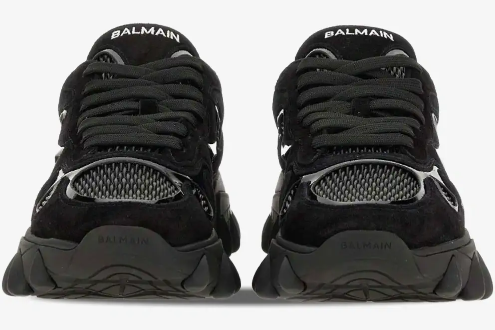 A signature chunky sole defines the B-East, featuring a claw-like aesthetic that extends upward toward the midfoot panels. This responsive rubber outsole offers exceptional grip and durability for daily wear in diverse metropolitan environments. The interior includes a cushioned footbed and soft lining to provide premium comfort throughout the day. Every stitch reflects the meticulous standards of Balmain, ensuring that this sneaker maintains its shape and luxury appeal over time. The heavy-duty lacing system secures the foot while adding another layer of technical detail to the premium silhouette.