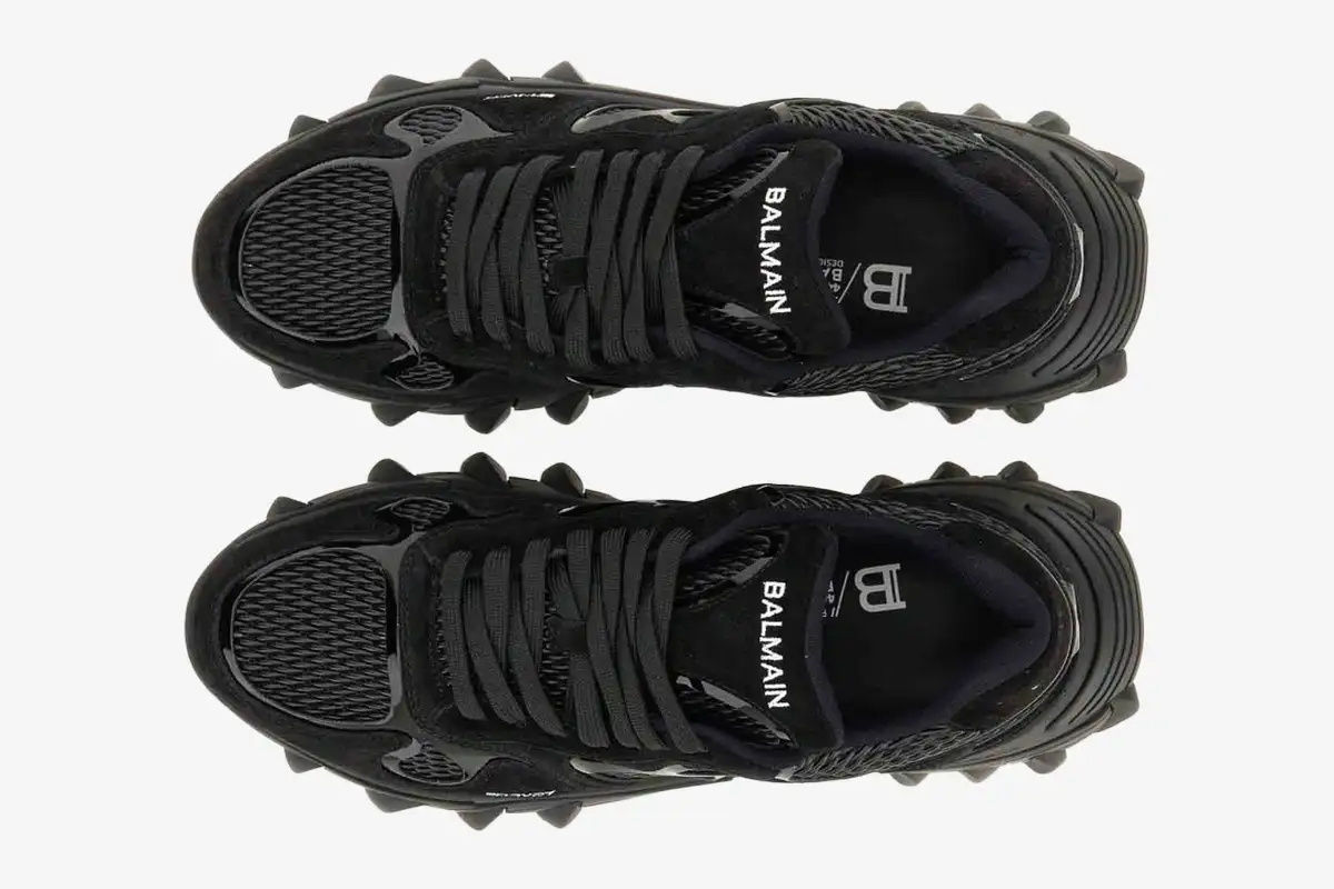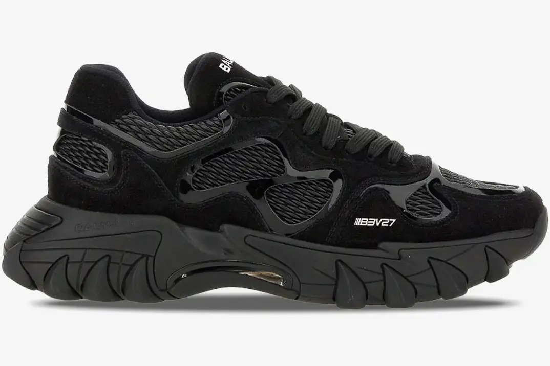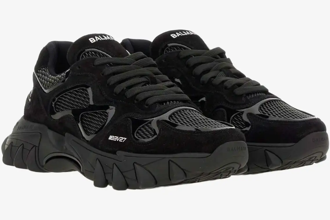 The Balmain B-East Low Top ‘Black’ delivers a bold, monochromatic statement within the luxury house’s footwear collection. This specific edition utilizes a triple-black palette to emphasize the intricate, multi-layered construction of the iconic silhouette. Designers combine heritage craftsmanship with modern technical aesthetics to create a sneaker that dominates the urban landscape. The B-East represents the pinnacle of Balmain’s aggressive design philosophy, blending high-fashion elegance with raw, athletic energy.