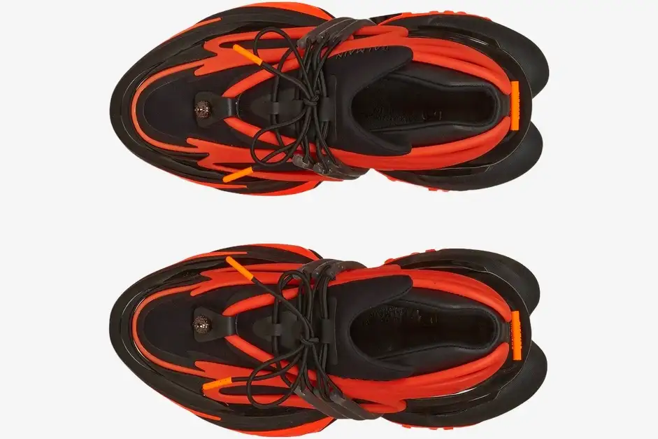 The Balmain Unicorn Low-Top Orange Black represents the pinnacle of Olivier Rousteing’s vision for high-fashion performance footwear. This specific iteration pairs vibrant orange accents with deep black panels to emphasize the silhouette’s complex, multi-layered construction. It caters to the modern collector who demands a fusion of avant-garde design and premium craftsmanship.
