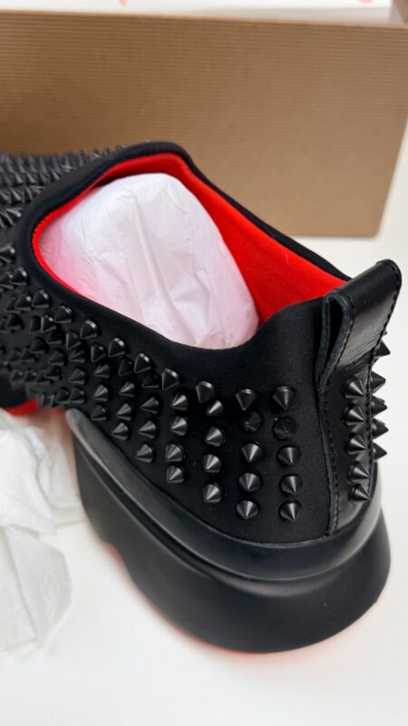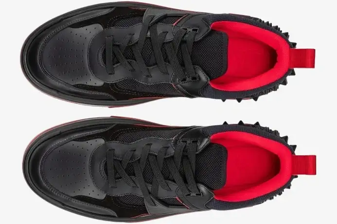 This specific iteration balances aggressive athletic lines with the sophisticated DNA of the Maison Louboutin. It caters to the modern collector who demands high-fashion heritage within a functional, street-ready sneaker design. The design reflects a meticulous attention to detail that separates this model from standard luxury trainers. The black and red color palette creates a striking visual contrast that emphasizes the architectural layers of the upper.
