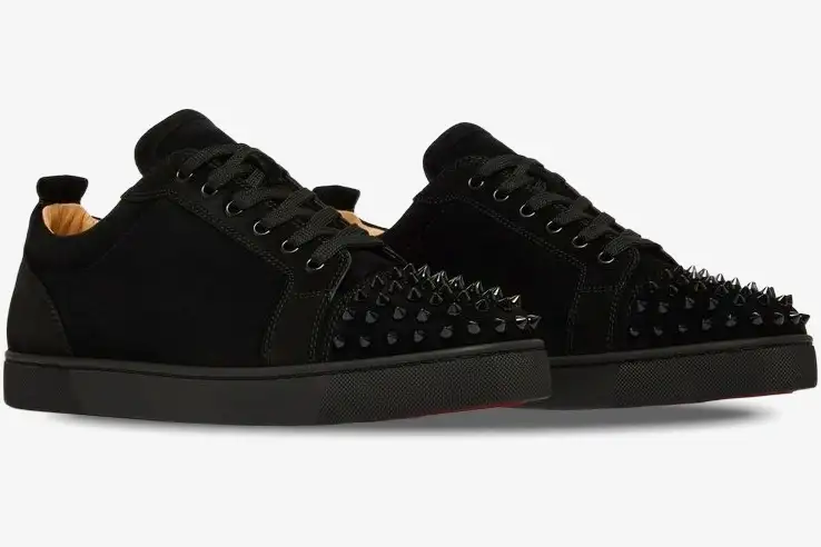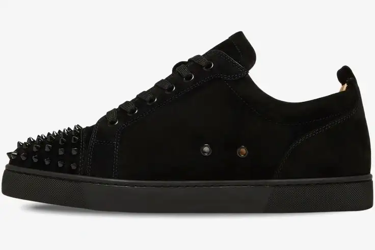 Christian Louboutin redefines luxury street style with the iconic Louis Junior Spikes in a sleek black suede finish. This version balances aggressive punk aesthetics with the refined craftsmanship of Parisian high fashion for a bold statement.