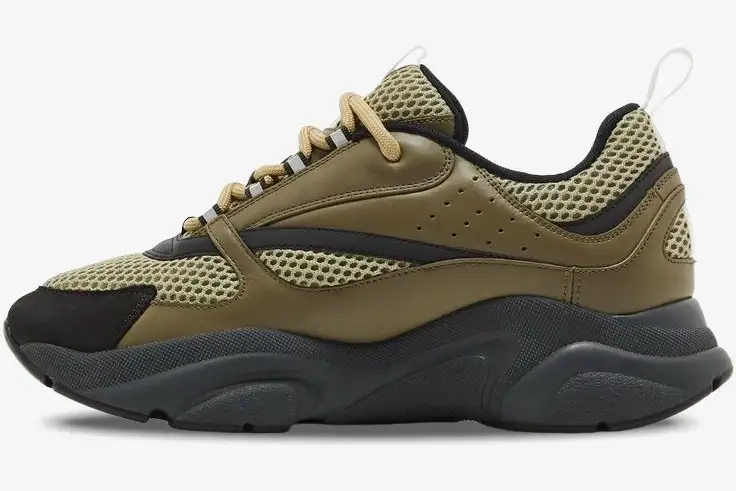 This iteration features a meticulous blend of technical mesh and smooth calfskin to ensure both comfort and longevity. The interior lining consists of soft fabric that prevents friction and provides a snug fit for daily wear. Every stitch on the ‘Khaki Black’ edition reflects the high standards of Dior craftsmanship and attention to detail. This sneaker represents a bold statement for those who value premium construction and a distinct, modern aesthetic.