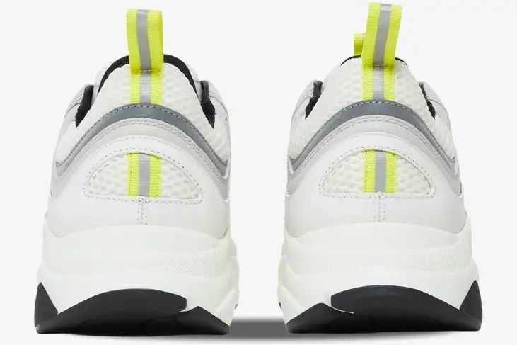 The DO033 edition stands out through strategic color-blocking that emphasizes the complex architecture of this premium sneaker. Smooth white calfskin wraps the toe and midfoot to provide structural integrity and a premium tactile experience. The grey mesh inserts offer lightweight ventilation while creating a sophisticated tonal transition between the white and yellow elements. This specific color arrangement ensures the sneaker remains versatile enough for casual outfits yet bold enough to anchor a high-fashion ensemble.