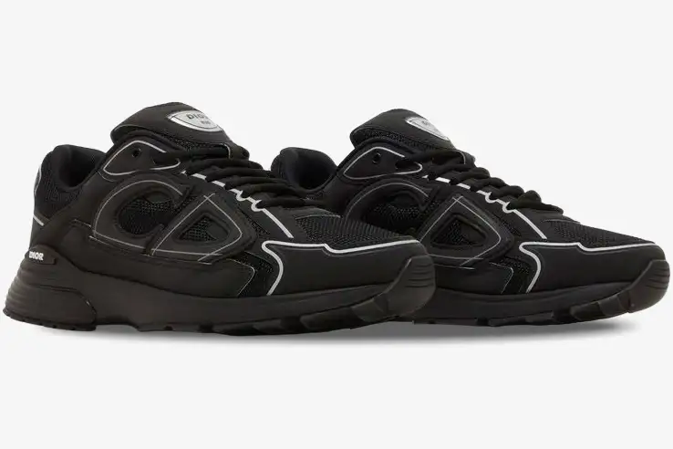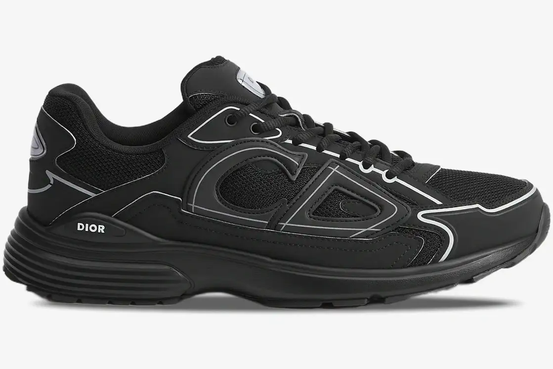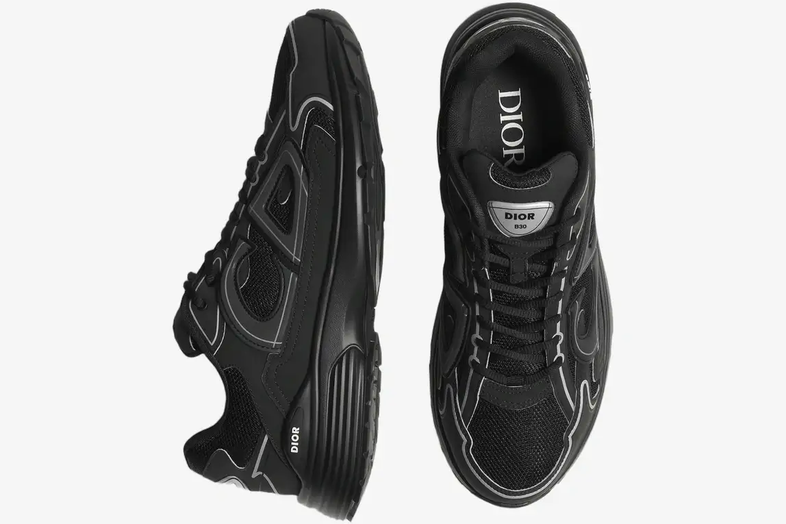 The Dior B30 Sneaker in Black combines high-fashion craftsmanship with the aerodynamic aesthetic of a classic running shoe. This specific iteration utilizes a monochrome palette to highlight its complex construction and premium materials. It serves the modern enthusiast who demands luxury quality within a versatile, athletic silhouette. The all-black colorway provides a stealthy look that transitions easily from high-end events to casual street environments.
