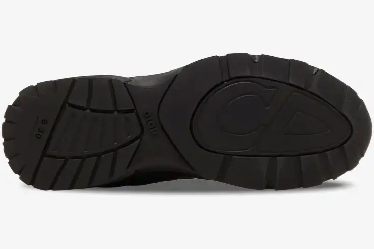 A sculpted, chunky rubber outsole provides a responsive feel and a commanding presence on the street. The sole features a unique tread pattern that ensures grip while complementing the overall architectural look of the sneaker. This lightweight construction allows for all-day comfort without sacrificing the bold silhouette of a high-end fashion piece. The heel counter displays the Dior signature, reinforcing the premium identity of this technical silhouette.