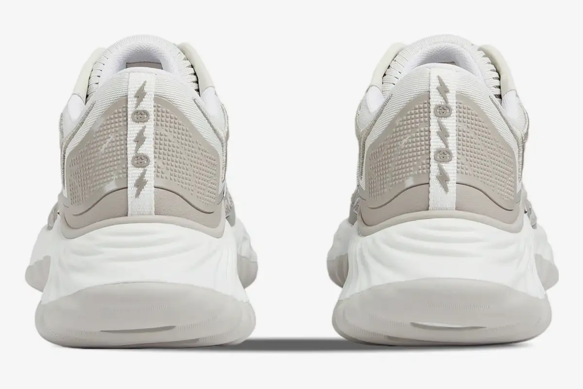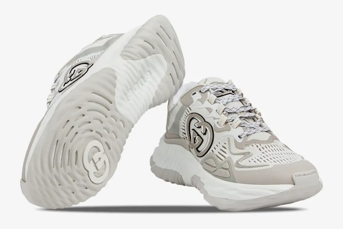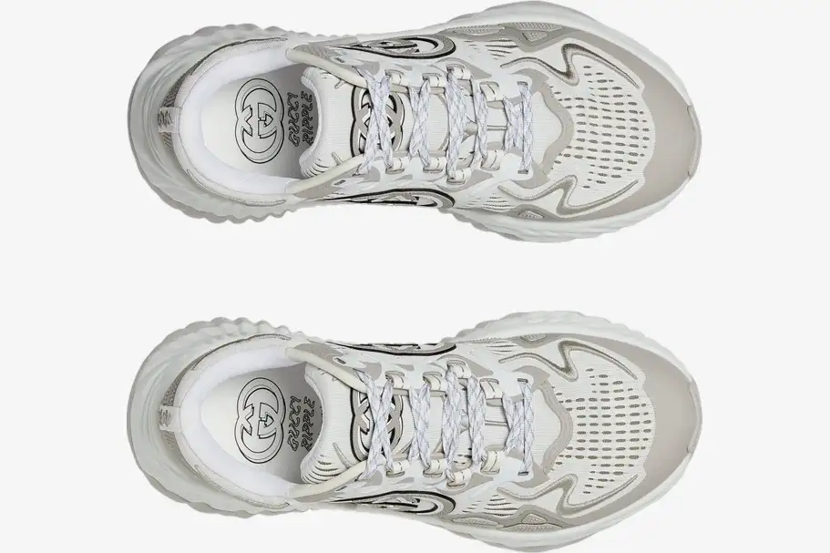 The Gucci Ripple White / Grey Mesh redefines luxury sportswear through its architectural silhouette and technical material composition.