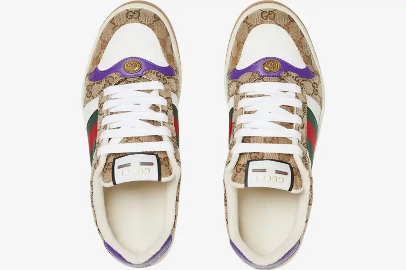 The Gucci Screener GC291 draws inspiration from classic trainers of the 1970s vintage sports era. This specific iteration blends iconic house codes with bold purple leather accents for a modern luxury twist. Every element reflects the rich history of the brand while pushing the boundaries of contemporary street style.