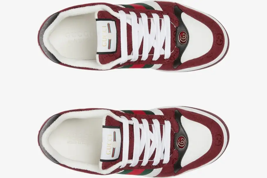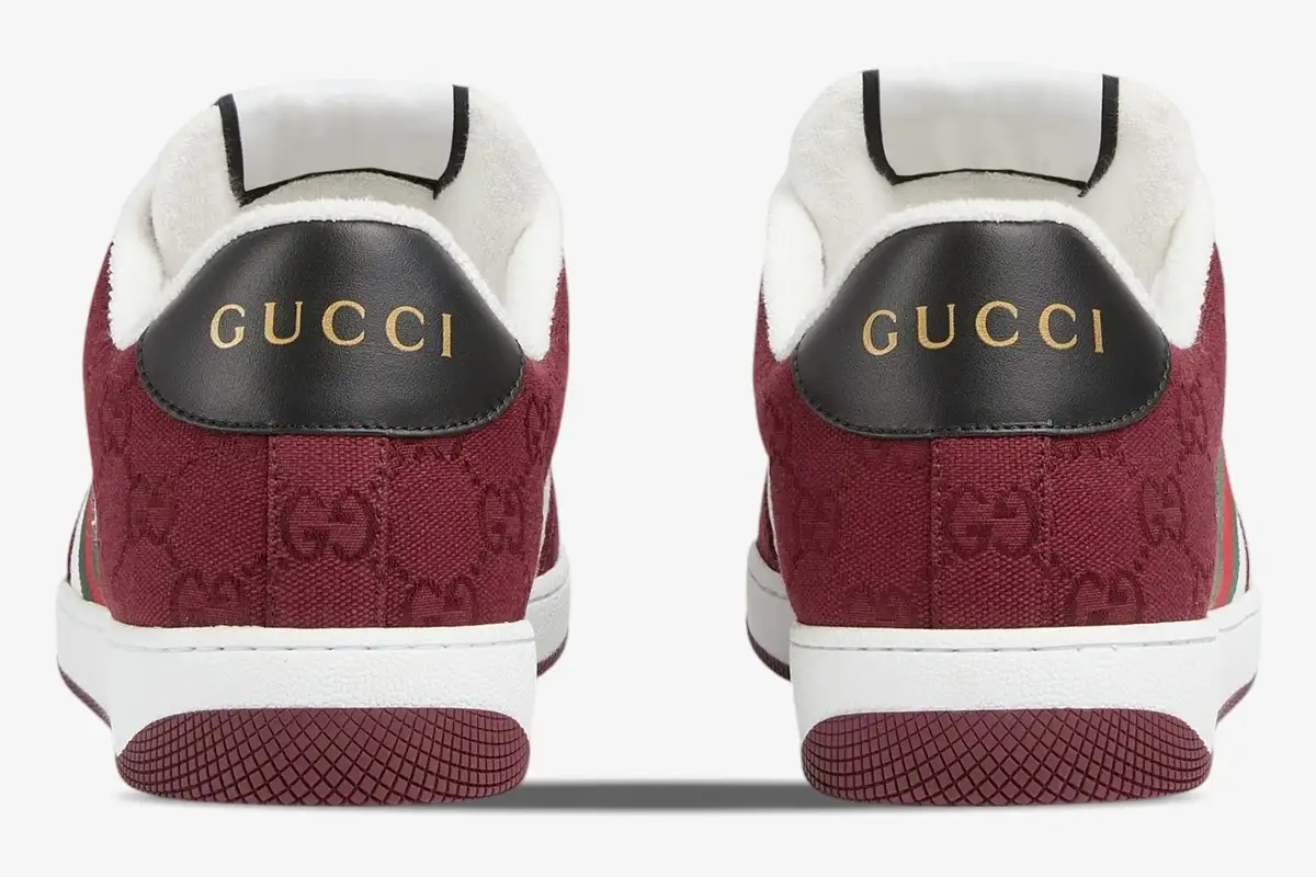 The Rosso Ancora palette transforms the classic Screener silhouette into a modern statement piece. This deep, rich red hue covers the premium leather overlays and complements the traditional GG canvas base. The color choice pays homage to the heritage of the brand while maintaining a fresh, relevant presence in luxury streetwear. Every stitch highlights the meticulous craftsmanship expected from a premium Italian fashion house.