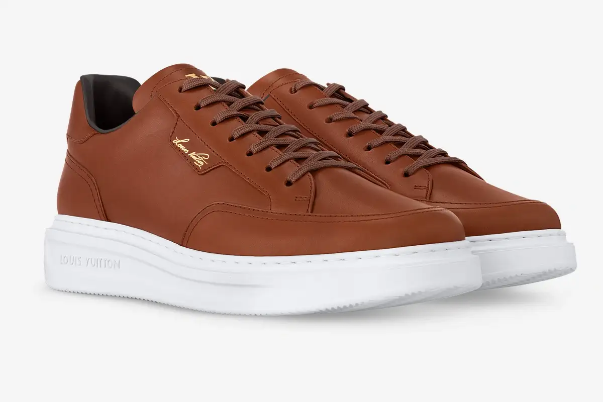 The Louis Vuitton Beverly Hills in Brown redefines the luxury sneaker through its use of premium grained calf leather. This specific iteration focuses on a monochromatic earth-tone palette that elevates the classic tennis-inspired silhouette. It caters to individuals who value understated elegance and high-end craftsmanship in their daily footwear rotation.