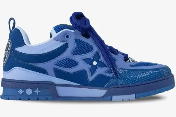 The Louis Vuitton LV Skate Blue reinterprets the 1990s skate aesthetic through a luxury lens. This specific iteration utilizes a dual-tone blue palette to highlight its complex, multi-layered construction. It caters to the modern connoisseur who values archival skate culture and high-fashion craftsmanship. The design balances a voluminous silhouette with the refined details expected from the Maison.