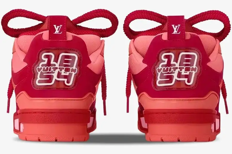 The technical fabric lining creates a smooth interior environment that prevents irritation during movement. Every stitch reflects the meticulous standards of the Louis Vuitton ateliers, ensuring long-lasting durability for daily use. The pink accents provide a subtle contrast against the primary red leather, highlighting the intricate paneling of the upper. This colorway represents a daring departure from traditional neutral tones, making it a centerpiece for any curated collection. The rubber outsole incorporates a specialized tread pattern that pays homage to classic skateboarding footwear designs. This premium sneaker bridges the gap between high-end fashion and the raw energy of street culture.