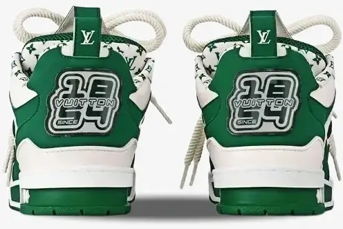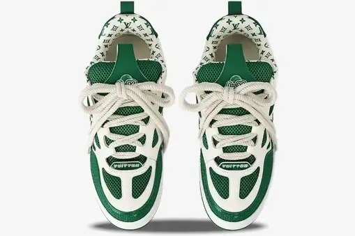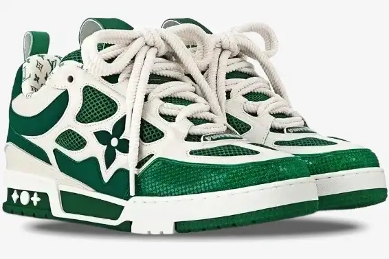 The Louis Vuitton LV Skate Sneaker in Green White reinterprets the nineties aesthetic through a luxury lens. This specific iteration blends technical performance materials with the heritage craftsmanship of the French fashion house. It caters to the modern enthusiast who values both street culture and high-fashion refinement. The striking green and white palette defines this version, offering a bold contrast that highlights the complex paneling. An oversized Monogram flower adorns the lateral side, serving as a signature mark of the house’s design language.