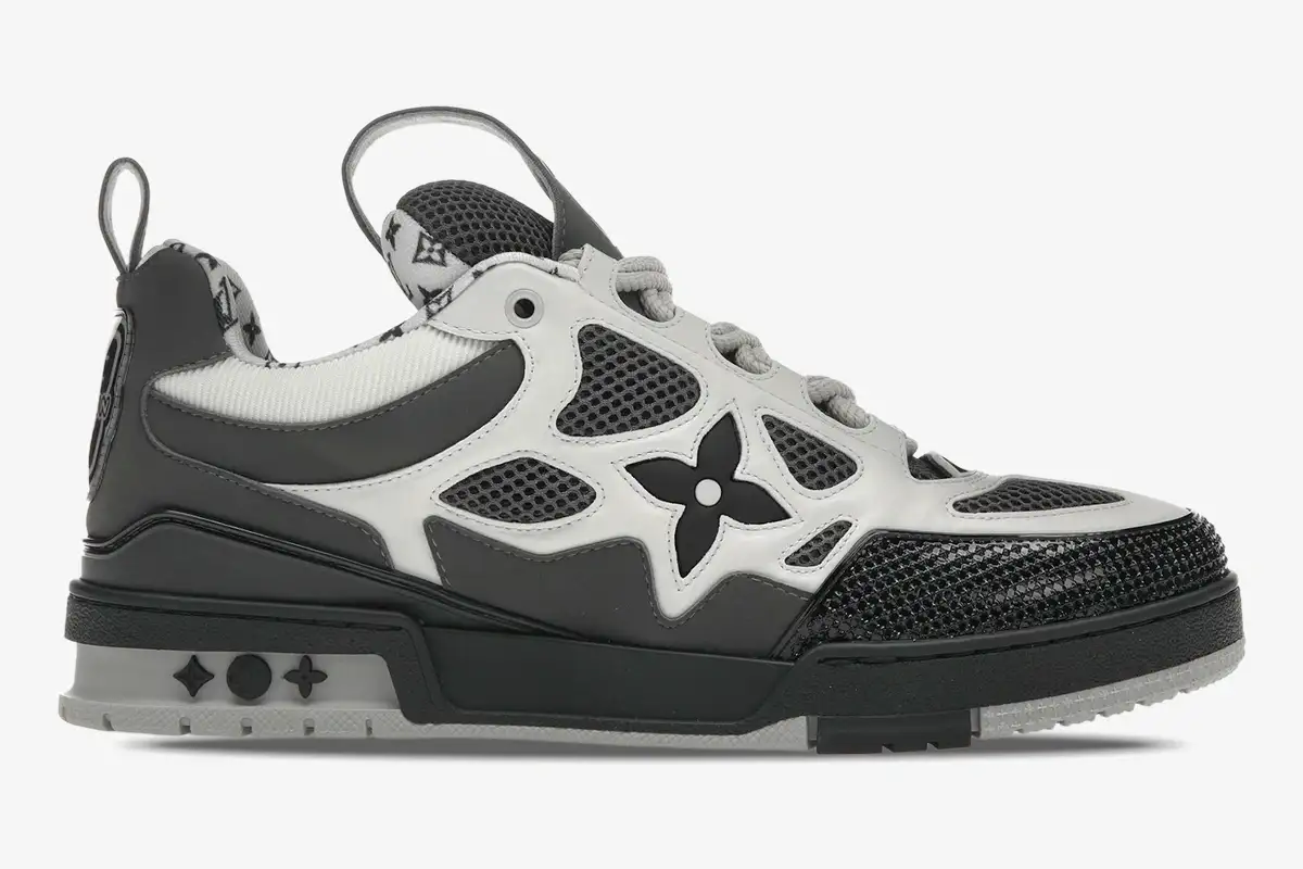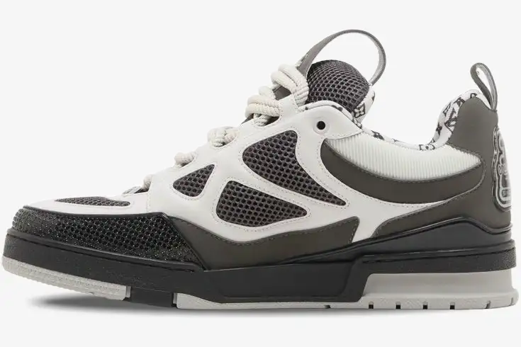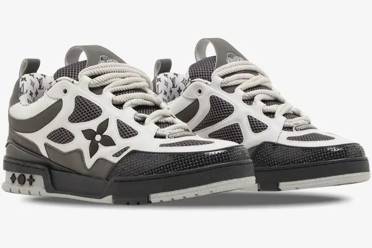 The Louis Vuitton LV Skate Sneaker in Grey White reimagines the classic nineties skate aesthetic through a luxury lens. This specific edition utilizes a neutral palette to highlight the intricate construction and premium materials of the silhouette. The design caters to individuals who appreciate the intersection of high-fashion craftsmanship and authentic street culture.