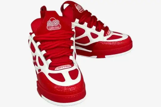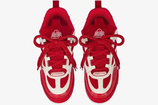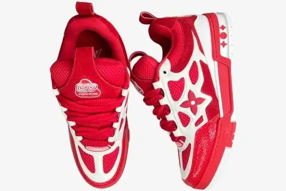 The Red White edition emphasizes the oversized proportions and layered aesthetic characteristic of classic skate footwear. Large Monogram flowers adorn the side panels, serving as a signature mark of the house’s heritage. The design incorporates thick, double-looped laces that reinforce the chunky aesthetic while providing a secure, adjustable fit. This colorway creates a striking visual contrast that demands attention in any streetwear ensemble.