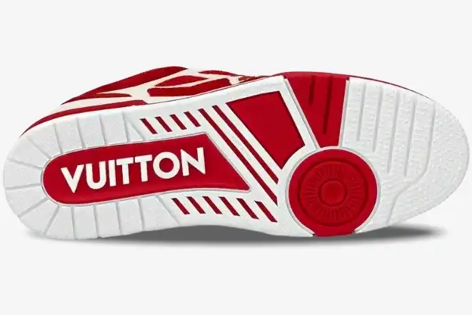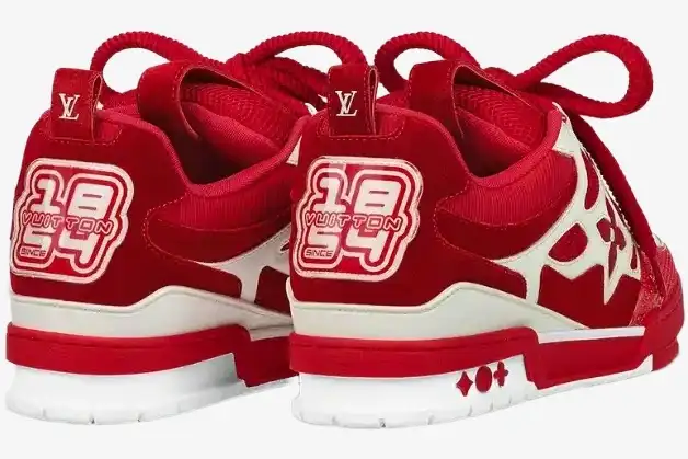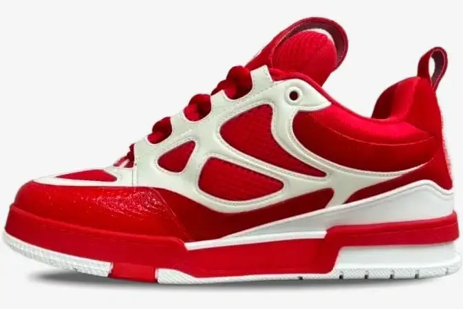 The Louis Vuitton LV Skate Sneaker Red White reinterprets a nostalgic 1990s-inspired silhouette through a high-fashion lens. This specific iteration utilizes a bold two-tone palette to highlight the intricate technical construction of the upper. It caters to the modern collector who values both street authenticity and artisanal craftsmanship. The vibrant red suede panels provide a premium texture that complements the crisp white mesh base.