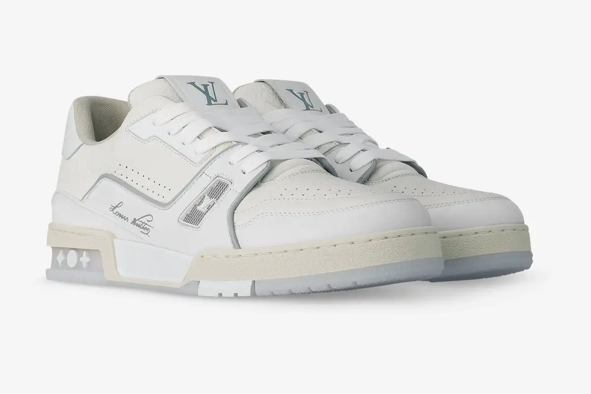 Premium calf leather forms the structured upper, offering a soft feel and long-lasting durability. The white leather undergoes a rigorous selection process to ensure a consistent texture and premium finish across every panel. Precise micro-perforations on the side and toe box improve breathability while adding technical visual interest to the design. The rubber outsole incorporates injected Monogram flowers, providing a subtle yet unmistakable mark of luxury craftsmanship.