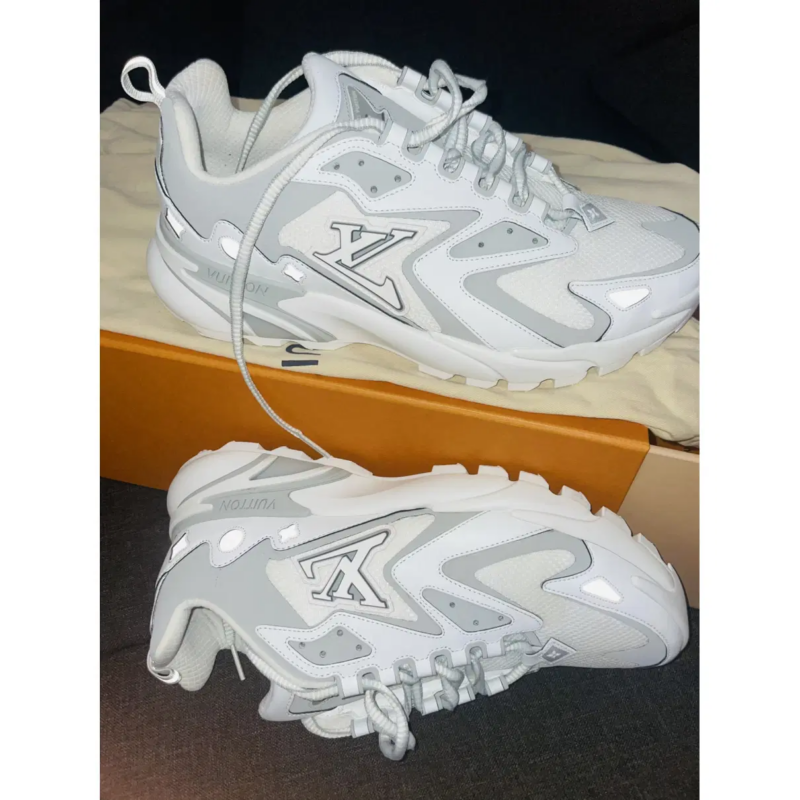 The Louis Vuitton Runner Tatic White Grey represents a pinnacle of luxury sportswear design within the current collection. This specific iteration utilizes a clean, monochromatic palette to emphasize the complex architectural lines of the silhouette. It serves the modern enthusiast who demands high-fashion aesthetics alongside functional athletic performance. This model integrates heritage luxury elements with a modern running silhouette for a versatile footwear option.
