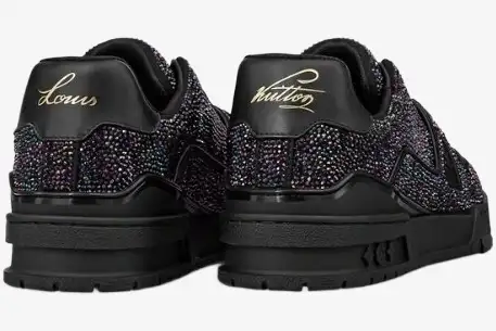 The Louis Vuitton Trainer Rhinestone redefines luxury streetwear through a meticulous application of light-refracting crystals across its iconic basketball-inspired silhouette. This specific edition transforms the Virgil Abloh-designed classic into a high-jewelry masterpiece for the modern collector. It bridges the gap between heritage craftsmanship and contemporary urban aesthetics through bold material choices.