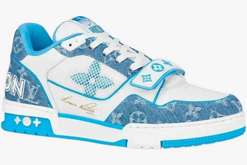 Louis Vuitton Trainer Low Velcro Strap Light Blue Monogram Denim