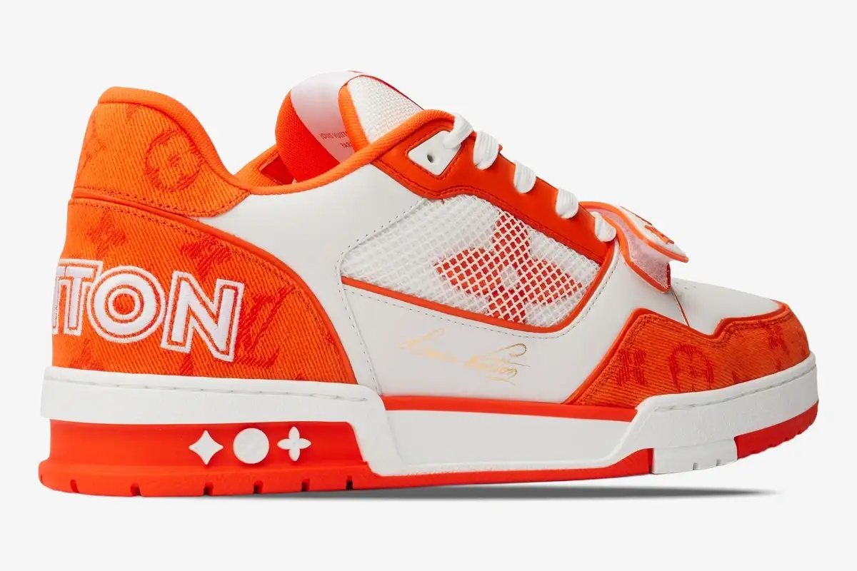 The Louis Vuitton Trainer Monogram Denim Orange redefines luxury streetwear through its vibrant color palette and iconic heritage patterns. This specific iteration showcases the late Virgil Abloh’s vision for high-fashion footwear with a bold orange aesthetic. It caters to collectors who value the intersection of French craftsmanship and vintage basketball silhouettes. Each pair requires seven hours of meticulous stitching to ensure the highest standard of luxury construction.