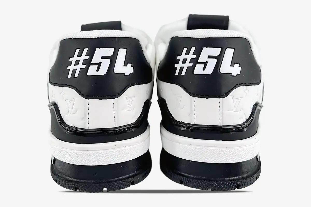 The signature #54 branding on the heel serves as the defining characteristic of this premium release. This numerical detail honors the founding year while providing a distinct visual identity compared to standard trainer models. The side panel features the iconic Louis Vuitton script in a contrasting gold-tone finish for elevated visibility. These elements transform a standard athletic shape into a piece of wearable history.