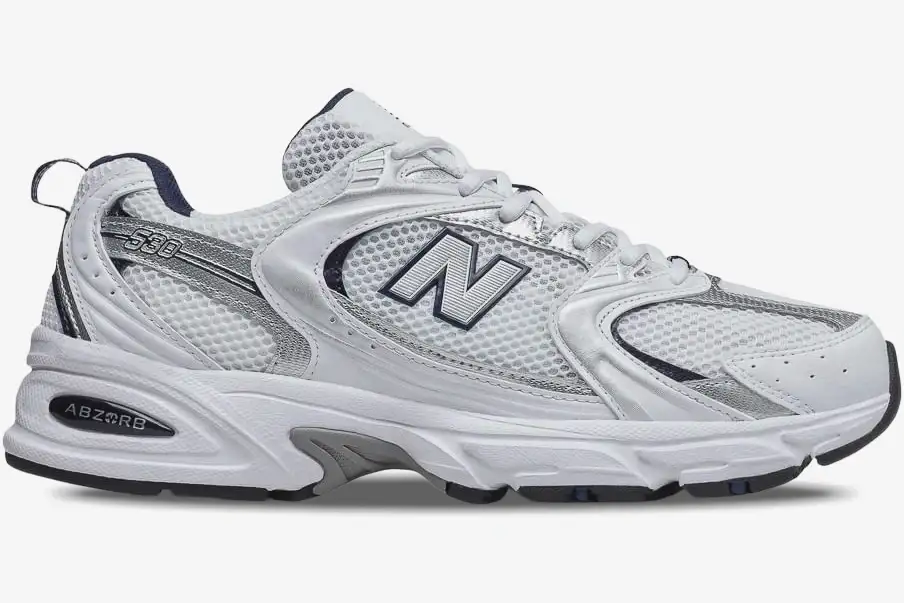 A high-quality mesh upper ensures maximum airflow for the foot during extended daily wear. Synthetic overlays add structural integrity and a reflective sheen to the profile. The ABZORB midsole technology absorbs impact through a combination of cushioning and compression resistance. A padded collar and tongue provide a secure fit while maintaining a lightweight feel. The durable rubber outsole delivers reliable traction on various urban surfaces throughout the day. The chunky midsole design reflects the authentic running heritage of the 530 series. Breathable materials keep the interior cool while the synthetic frame offers necessary support. Every stitch on this White Silver Navy model follows the original performance specifications. The heel pull tab allows for easy entry while maintaining the sleek lines of the silhouette. Internal lining consists of soft textile to prevent irritation during long periods of movement. This model represents a bridge between vintage athletic equipment and contemporary lifestyle fashion.
