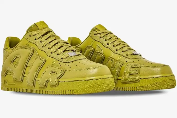 Premium leather covers the entire upper, providing a durable foundation for the massive graphic overlays. The vibrant green colorway offers a monochromatic look that highlights the unique construction of the collaboration. A traditional perforated toe box ensures breathable comfort while maintaining the recognizable Air Force 1 DNA. The low-cut collar provides a natural fit around the ankle for all-day wearability. Nike Air cushioning resides within the foam midsole to deliver responsive impact protection during every step.