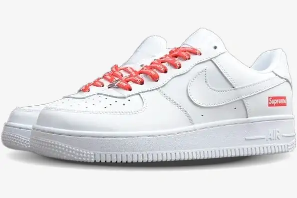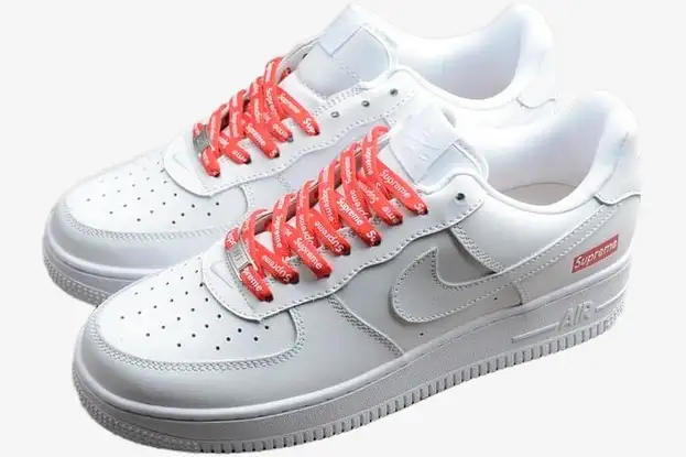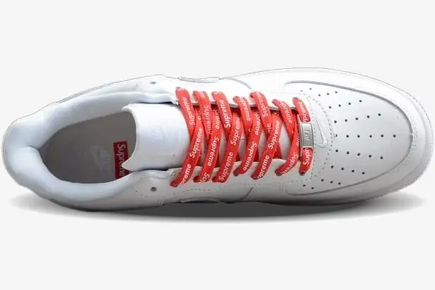 The signature Supreme red box logo sits prominently on the lateral heel to distinguish this pair from standard releases. This collaboration celebrates the enduring influence of the Air Force 1 within the global streetwear community. Every pair includes a set of secondary laces featuring repeated Supreme branding for a customized visual impact. These extra printed laces allow wearers to amplify the collaborative identity of the sneaker through bold contrast.