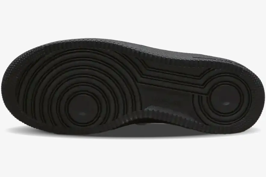 Premium tumbled leather covers the entire upper, providing a rich texture and durable structure for daily wear. A molded heel clip adds a futuristic dimension while ensuring stability and a secure fit. The monochromatic black colorway highlights the contrast of the white oversized Swoosh for maximum visual impact. Nike maintains the classic encapsulated Air unit within the midsole to provide responsive cushioning and all-day comfort.