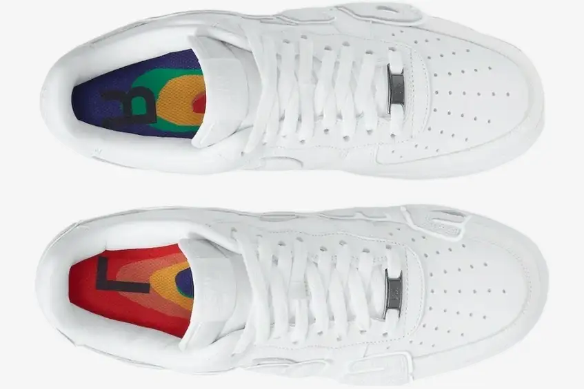 Premium white leather provides a clean foundation for the exaggerated design elements found throughout the upper. The traditional perforated toe box ensures breathable comfort while maintaining the recognizable shape of the original silhouette. A classic rubber cupsole houses a responsive Air unit to deliver the cushioning expected from a performance icon. Cactus Plant Flea Market adds custom insoles featuring vibrant, heat-map graphics to complete the internal aesthetic. The tonal white colorway allows the bold structural modifications to remain the primary focus of the sneaker.