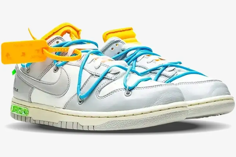 The Nike Dunk Low x Off-White Lot 2 of 50 represents a pivotal moment in Virgil Abloh’s expansive “Dear Summer” collection. This specific iteration belongs to a limited series of fifty unique colorways that redefine the iconic basketball silhouette. It caters to collectors who value the intersection of industrial design and traditional athletic footwear. Each pair serves as a functional canvas for Abloh’s vision of mass-production through a lens of individuality.