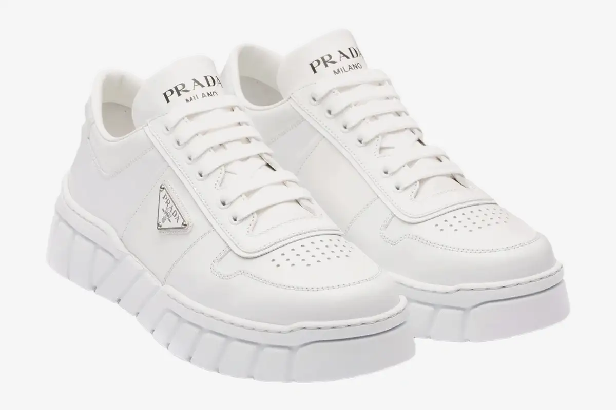Prada redefines the luxury low-top silhouette with the specific Geometric Tread edition for modern urban environments. This premium leather sneaker features a unique architectural sole that distinguishes it from standard luxury footwear options. The design caters to individuals who appreciate clean lines paired with bold, structural elements in their daily rotation.